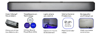 - 2 Channels of LEDs - Blue & White Channels Separate