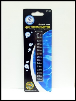 JBJ LCD Stick On Thermometer for mounting on outside of Aquarium Digital Liquid Crystal Temp Range 64 F to 93 F Celsius / Fahrenheit For Fresh or Saltwater Part # BT-05 UPC - 6924781201125